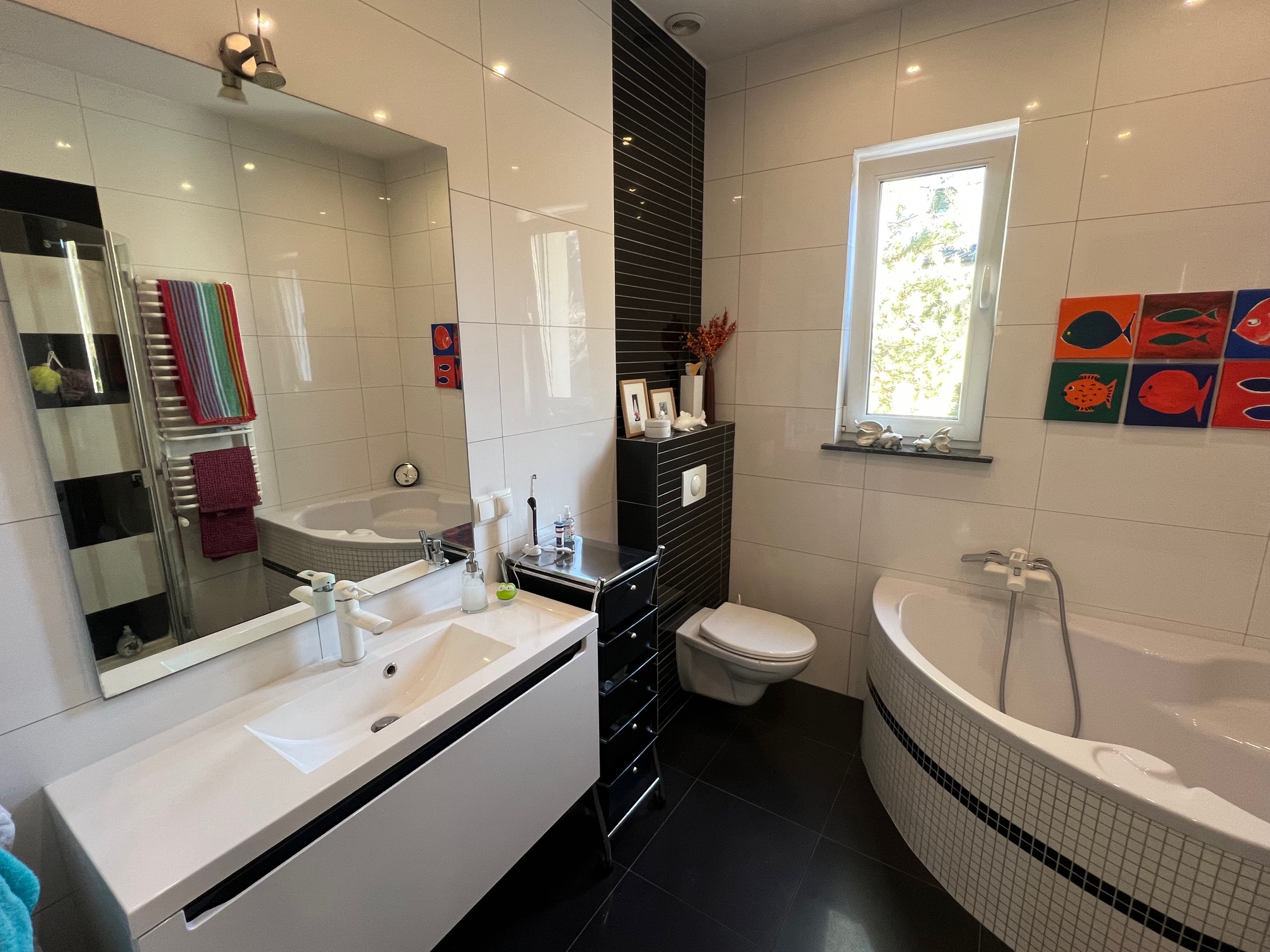 Baujahr 2012 - massiv erbaut, sehr guter Standard - mit hochwertigen Materialien - neuwertig, Fußbodenheizung, Rollläden elektrisch, Wohn-/Nutzfläche: 90 qm + ca. 32 qm Spitzboden ausgebaut, liebevoll gestaltete Außenanlage, erstklassige ruhige Ortsrandlage mit sehr viel Grün
