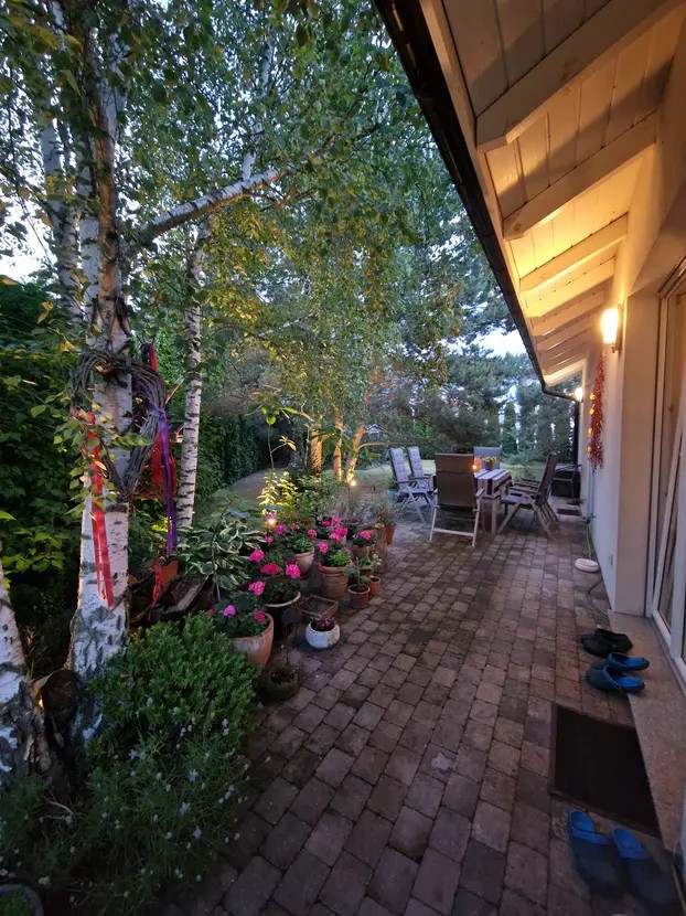 Ein Highlight ist das liebevoll angelegte Gründstück. Die gärtnerische Anlage mit zwei Terrassen, den PKW-Stellplätzen und die beeindruckende Pflanzenvielfalt geben dem Anwesen eine besondere Atmosphäre.