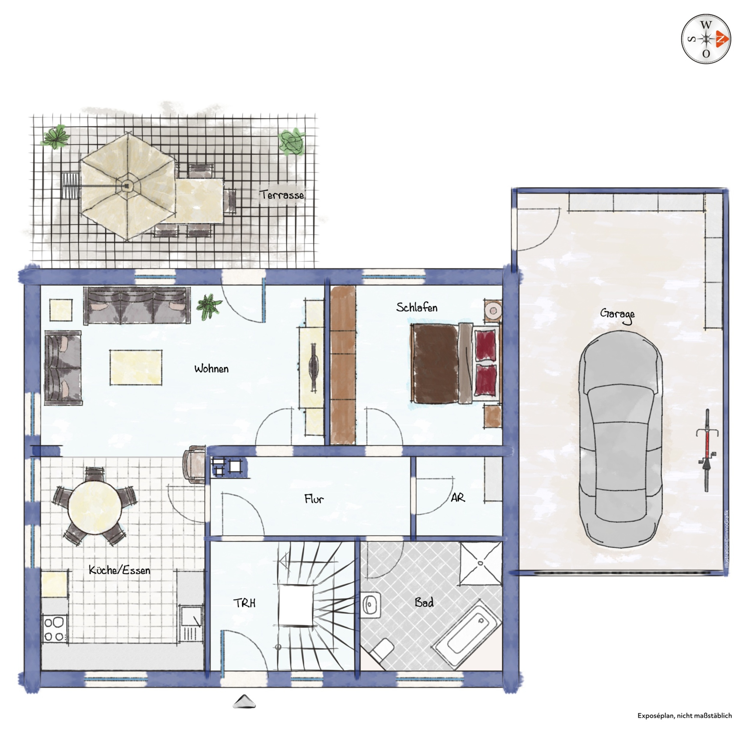 Anmerkung: Dachgeschoss (60 qm) zur Zeit vermietet.