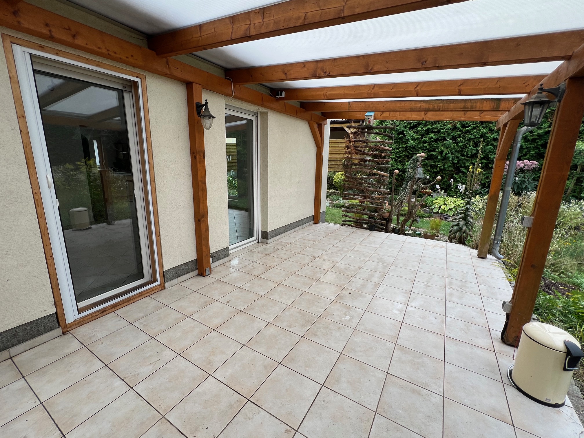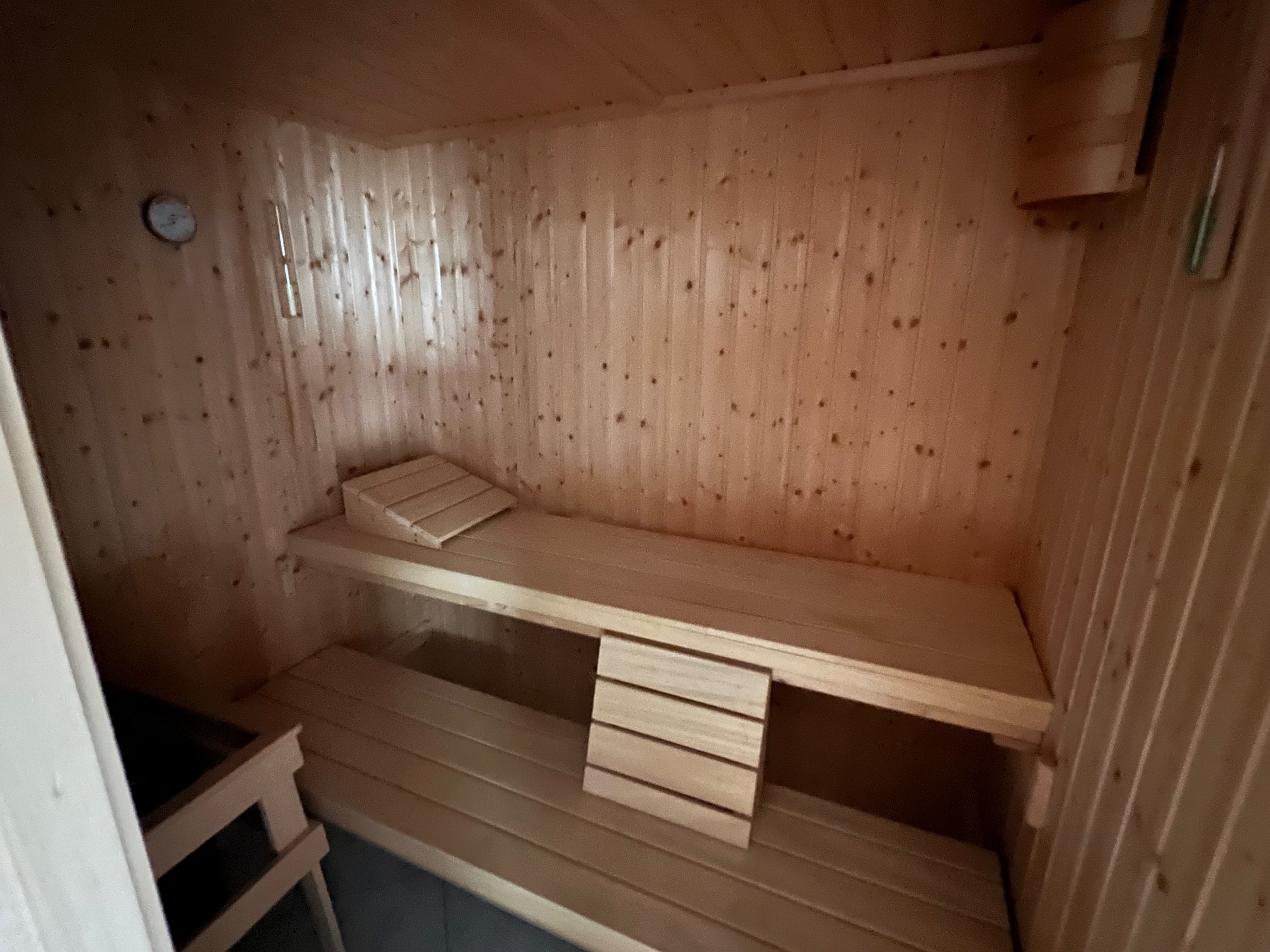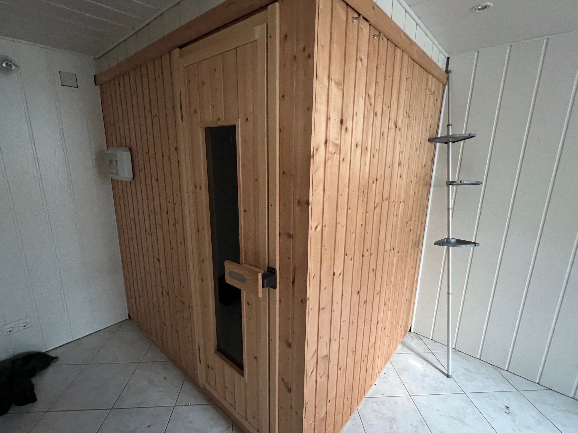 Beheizt wird das Haus mit einer Gaszentralheizung, mit Fußbodenheizung (auch im Kellergeschoss). Ein Kaminofen ist ebenso vorhanden, wie eine Einbauküche und eine Sauna mit Extra-Dusche im Kellergeschoss. Die Terrasse im EG zeigt Richtung West. Das Dach wurde mit Tondachsteinen eingedeckt. Die Decke zwischen EG und DG ist eine Massivdecke.